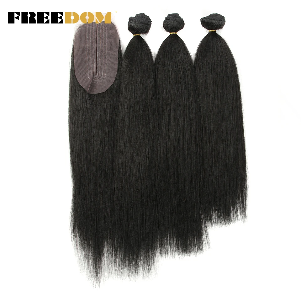 Freedom 18 20 22 Inch Yaki Straight Hair Bundles With Closure Synthetic Weave Hair With Lace Closure Ombre Brown Hair Extension Synthetic One Pack For Black Aliexpress